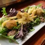 Spinach, apples, cucumbers, red onions, sprouts, grilled portabella topped with goat cheese. Served with honey mustard dressing